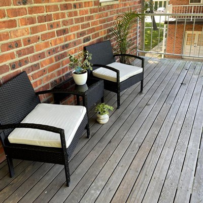 This is a great and affordable outdoor set. We were able to easily assemble it. The chairs are surprisingly comfortable