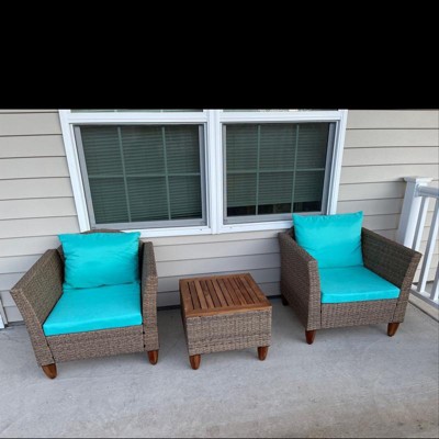 Costway 3PCS Patio Wicker Rattan Sofa Set Furniture Acacia Wood Conversation Grey/Red/Turquoise/Navy/Black/Mix Brown