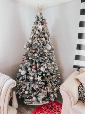【Full-body Snow Flocked Xmas Tree】Crafted with 400 snow flocked branch tips, this 4.5FT Christmas tree is leafy and elegant. It will create a unique wintry feel, leaving you with the false sensation that it is a real tree. With its simple design, you can DIY ornaments with family members at will and deepen family ties.