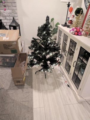 tree feels smaller than 4.5 feet. it's really dark green and from afar it looks black. the picture does not represent the actual product. the lights are very minimal and only on part of each branch leaving blank spaces throughout the tree. I typically don't write reviews but this was really disappointing and I'm making a return.