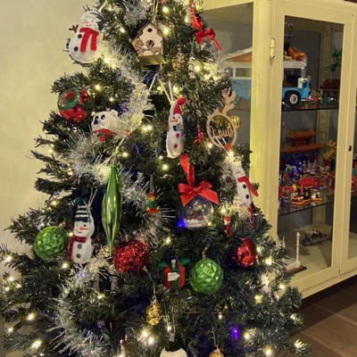 This is our 4.5 ft Pre-lit Christmas tree which is perfect for adding a festive glow to home, office, party, etc. 398 branch tips and 200 led lights make this tree look more full-bodied and genuine. Made of fade resistant and crush resistant PVC materials, this Christmas tree can be used for a long time. The sturdy metal trunk and stand make the Christmas tree stand more straight and stably. Furthermore, our Christmas tree is divided into two sections for easy assembly, disassembly and storage. Don't hesitate to buy it now!