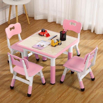 Costway 4 in 1 Kids Table & Chair Set w/Reversible Graffiti & Building Blocks Tabletop White & Natural