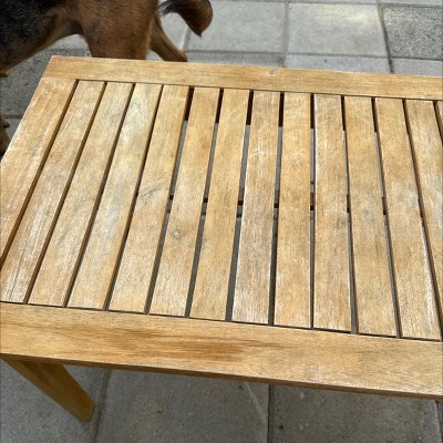 I’ve had this set for a couple months now. It looks great, but it’s getting weathered quickly. It says it is already weather treated, but I conditioned the wood once already and it’s still already dry and bleached from the sun, and this is the humid Midwest. The cushions have also quickly become sun damaged. I don’t regret the purchase, just wished it was slightly better quality, especially during the first couple months of use.
