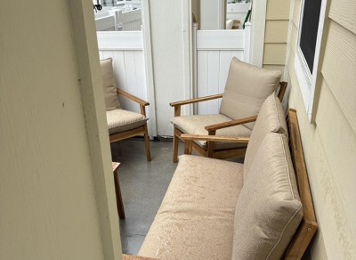 This conversation set is perfect for hanging out on our patio. Take the pillow out of the package and pat it a couple times and you'll have a fluffy yet soft cushion. Really happy with this purchase.