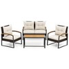 Costway 4 PCS Patio Conversation Set with Coffee Table Solid Acacia Wood Armrests Tabletop