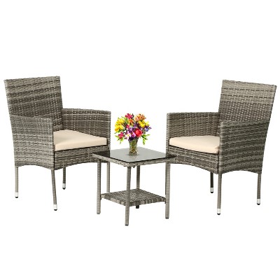 Costway 4 PCS Patio Furniture Set with 2 Rocking Bistro Chairs 2-Tier Coffee Table