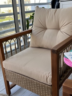 Costway 3PCS Patio Rattan Furniture Set Wooden Armrest Table Top Cushioned Deck Beige/Navy/Off White