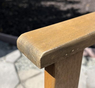 The wood is very beautiful. It was easy to put together, I did it myself and super comfy....A beautiful addition to my patio that appears to be able to weather time.