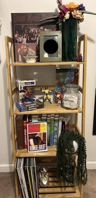 I had way too many trinkets, books, etc scattered around my room so I bought this to display my stuff in a neater way. It was easy to assemble and holds plenty. Once I filled up the shelves, it lost its angled look. This isn't a huge deal to me, but I wanted to note it. Overall it works pretty great!