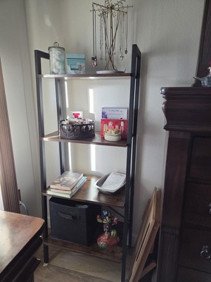 I've been using this shelf for displaying flowers, and it's absolutely gorgeous. It's a fantastic addition to any room with its sleek and stylish design that blends industrial aesthetics with practicality. Plus, it offers plenty of storage for books and decor. It's sturdy, built to last, and the space-saving ladder design gives any room a unique touch. I highly recommend it!