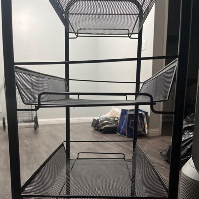 - A simple and elegant 4-tier trolley is convenient for storage. 2.5'' mesh baskets keep items from failing out even when on the move.