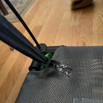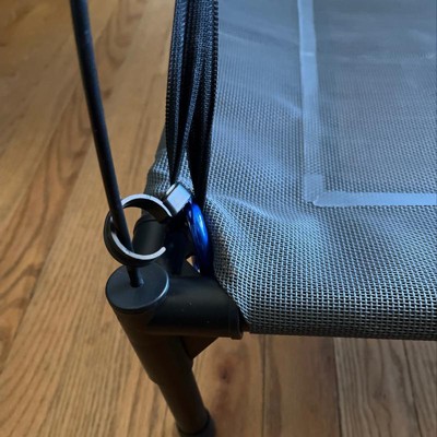 The cot itself is well made; however, the canopy does not hook securely to the cot with the plastic clips supplied. Which allowed a curious puppy to chew on. We added carabiners to each corner to secure the canopy. We are using it to teach “place” near our front door.