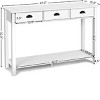 Compact and elegant design makes the console table a great additional to all room decorations. The modern console table features three drawers and shelf to store and display your belongings from small accessories to planets. And proper size in lightweight design, easy and convenient to move. It's ideal for bedroom and other room use. Don't hesitate to buy it now!