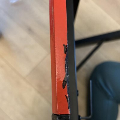The desk was chipped in multiple places, I had to use alternate screw for the brace because the hole was too large for the screw. Bothered welds on the holders. Instruction were okay until ya got to the cross braces. 3 outta 5 for me.