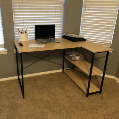 I needed an L-shaped desk for a smaller space. This fits perfectly - the shelf can be attached to either side depending on the room you’re putting it in. As far as DIY furniture goes, this one was pretty easy to assemble. We did it in less than an hour. The price was also great.
