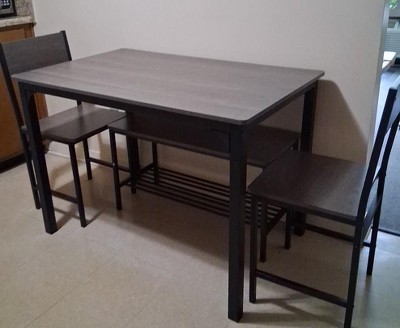 I absolutely love this table set! I have minimal space in my new apartment, and this set was the perfect fit! It is sturdy, incredibly easy to put together, and looks great! It is surprisingly comfortable, and gets the job done. I couldn’t recommend it more!