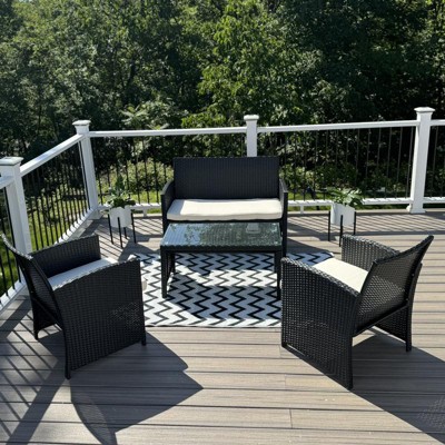 Costway 4PCS Outdoor Patio Rattan Furniture Conversation Set Cushioned Sofa Coffee Table