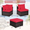 Costway 4PCS Patio Rattan Wicker Furniture Set Cushioned Sofa Ottoman Garden Turquoise\Red