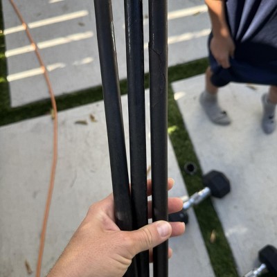The poles holding the main body up had crumbling paint, just by touching the poles. Main body is falling forward. very flimsy. Wouldn't buy again.
