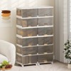 The stackable storage bin is a practical and versatile solution for keeping your belongings organized. With 22.5Gal large load capacity, it offers plenty of space to store shoes, clothes, books, or food. Its flexible modular design allows you to customize the layout by splitting and combining cabinets as needed. The collapsible bins are easy to fold for convenient storage and quick setup. Equipped with detachable universal wheels, the storage bin can be moved around effortlessly, and 2 lockable wheels provide stability when stationary. Crafted from premium PP material, the cabinet is deformation-resistant and safe to use. Convenient handles make it easy to reach items inside, while side clips ensure secure stacking for stability and organization in any space. The stackable storage bin is an ideal storage solution for various needs in your home.