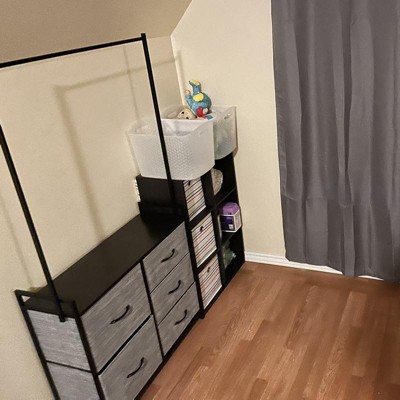 This fabric dresser has been very useful in my home. It's very versatile and can be used for many different things and in different rooms. I have been using it in my closet for some much needed extra organization and clothing storage. There are 5 drawers, 2 different sizes. The smaller 3 ideal for socks, underwear and extra accessories. The other 2 larger drawers are perfect for folded items such as sweaters or jeans. The drawers are durable and can hold a large weight capacity. What makes this dresser unique and even more useful is that there is a place provided up top, a 32 inch long rail, for hanging articles of clothing. I'm very happy with how easy assembly was. It went together with ease. It's extremely sturdy.