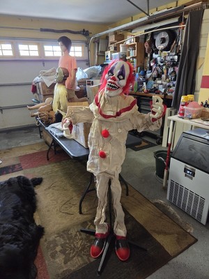 This is a fun Halloween decoration for my yard (on nice days) or my porch (on windy or wet days). It has a motion sensor to activate the arm and head movement as well as the "vocal" "threats". It gives everyone a shock when they first heat it, but they stick around for a second or third "threat".
