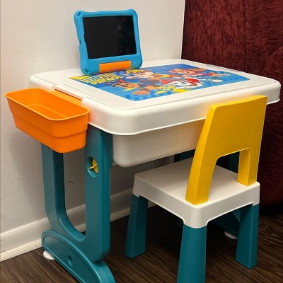 I love this little desk. My 3 year old granddaughter builds on the block side and draws on the smooth side. Would be better if there was a way to save block side yet use the smooth side. Also, would live to have 1 more chair or the option to buy additional chairs. Assembly was super easy!