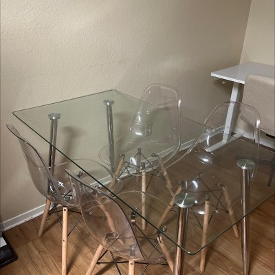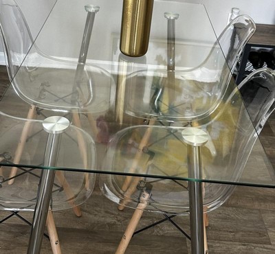 I love the aesthetic of the table and the chairs. It was super easy to install. The package came with the tools as well. The only thing I didn’t like was that the table legs were silver, gold would have went more with my decor. I love my new dining room table!!