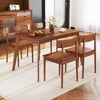 Our dining table and chair frames are meticulously crafted from high-quality rubber wood, known for its durability and strength. This ensures that your dining set will stand the test of time. Also, the walnut finish maintains natural appeal to complement your dining area. Boasting curved backrest, the chairs will comfortable support your waist for long dining sessions. In smaller dining areas where space optimization is key, our dinette table set offers a smart solution. The dining chairs are thoughtfully designed to neatly tuck underneath the table when not in use, saving valuable floor space and keeping your dining area organized and clutter-free.