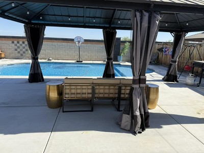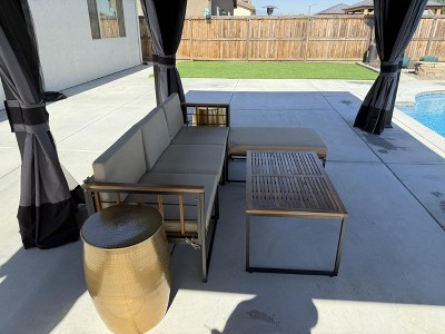 Perfect long deep couch for relaxing. It’s a perfect set up for outdoor style and luxury. Very Happy !