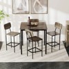 This 5-piece dining table set comes with a counter-height dining table and 4 bar chairs, and 4 seats around a 36" x 36" table make it perfect for entertaining friends and family. Its easy-to-clean surface saves you time and effort, allowing for hassle-free maintenance. Other than that, constructed of heavy-duty powder-coated metal tubes and the table leg tubes are 1.5" thick, our dining set ensures robustness and enduring support. And the bar table features 24.5" seat height and convenient footrests, providing optimal comfort for extended periods of sitting. When not in use, you can also store 4 chairs under the table, saving floor space. Additionally, it features a captivating modern wood grain finish paired with sleek black supporting legs, adding a touch of elegance to any decor style.
