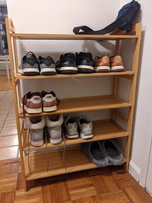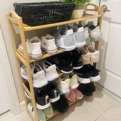 Our free standing bamboo shoe rack is the perfect solution to save space in your closet, living room or entryway!