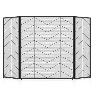 Costway 52 x 31 Inch Fireplace Screen 3-Panel Spark Guard with Chevron Herringbone Pattern