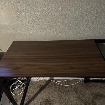 I am absolutely in love with this desk. I was a little worried it wasn’t going to be up to my standards, but the price is a steal! This desk is big enough for my apple desk top, it has space for my file holder, and plenty of space on the small side still left. Plenty of room underneath as well. My only downfall on this product is the small side of the desk - the holes did not line up at all 😅 Mines just kind of sitting on top of the frame. I do however have a way to fix it with some power tools, but just be prepared your small side of the desk - the screw holes won’t line up more than likely.