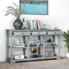 Costway 58'' Long Sofa Table with Storage Retro Console Table with 3 Drawers & Open Shelves Blue/White
