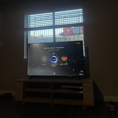 If you need a beautiful and sturdy TV stand, don't miss out on our new product. This TV stand is made of MDF veneer, which has a firm structure and strong load-bearing capacity. You can put things like TV, vases and photo frames on it. The most important thing is that it has a large capacity of open storage space. Eight cabinets allow you to put a lot of things, which saves you a lot of space. It has four threading holes on the back that allow wires from TV set-top boxes, DVD players, game consoles and stereos to pass through easily and orderly. And it's easy to clean and assemble, saving you a lot of time.