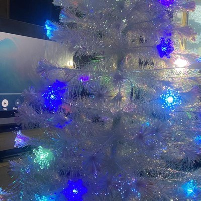 The 1/2-section Xmas tree boasts 170/230/270 branch tips that are composed of iridescent film leaves to reflect a rainbow of colors. Boasting a glowing star LED light, 24/36/48 colorful snowflake LED lights, and optic fibers, the 5/6/7 ft Christmas tree puts on a mesmerizing light show. The Christmas tree displays a different appearance during the daytime and nighttime. Made of high-quality PET material, it is non-allergic, fade-resistant, and free of any unpleasant smell. In addition, the holiday symbol boasts more premium details, including spare snowflake covers, a folding metal stand, and a UL-certified adaptor. Merry Christmas!