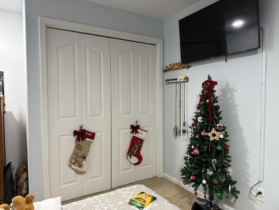 The perfect half tree in our bedroom our toddler loves it and it’s his perfect size of course he still needed a slight lift with his step stool but he did great decorating it and we were all happy with how it turned out 😊🎄