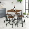 - 5 Piece Pub Dining Set: This pub table set includes a square table and 4 stools for wide application. With the combination of delicate retro wood veneer and chic look, it blends with your various styles of furniture and decorations. It is a perfect addition for dining areas and business zone, as a breakfast table, dining table and bar table.