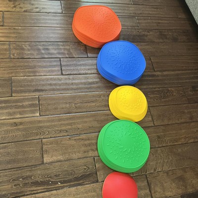 My son has developmental issues that require a lot of physical therapy which we try to do at home in between sessions. Finding unique approaches can be challenging. These stepping stones are AWESOME. they have non-slip edging for hard surfaces, but work great on carpet/grass/sand as well. They stack up nicely and are VERY solid and durable. Would definitely recommend.