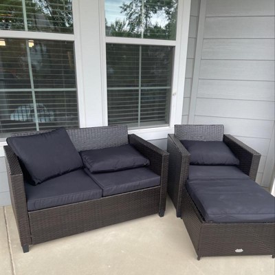 So far this furniture has been a nightmare. We live on the second floor of our building, and one morning I went down to my car, and there were giant boxes down the stairs sitting there in the hallway where anyone could have taken them! When we opened the boxes we realized we were missing the feet for all of the furniture and the instructions to put it all together. So we called target who tried to help but ultimately they had to contact the company who made it and they never got us the instructions. So we just happened to find them online, got the feet in, great! Right? Wrong! Turns out, we had 2 of the 3 boxes that it comes in, and then a double of one of the boxes! So now were expected to take apart the furniture that we’ve already put together, somehow package it up nice and neatly into these cardboard boxes that my cats have demolished, and return it to the store, when these boxes are huge and we have only have small cars??? If you value your sanity, don’t buy this furniture. It’s also super hard to put together. I managed to get the couch half way put together, but only by balancing the bench part on my head the entire time I was screwing the washers and nuts into place. Not to mention, I’m just not sure this is going to last. The quality isn’t great and very thin. It’s just plastic rattan and I’m worried it won’t last long.