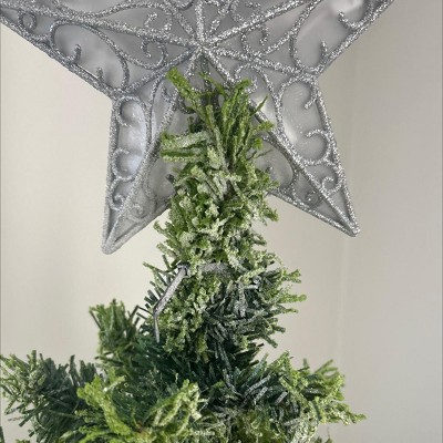 I was so excited for this tree based on the pictures, but the moment I opened the box I genuinely wanted to cry. The photos are extremely deceiving. Every branch is covered in a weird styrofoam “moss” that gets absolutely everywhere — it made a huge mess the second I started fluffing it. The metal base is extremely flimsy, and once you add lights and ornaments it becomes even more unstable. The top of the tree is also a problem: in order for it to reach “6.5 ft,” the manufacturer just added an extra-long top stem. It looks awkward, it’s super flimsy, and I had to zip-tie my tree topper just to make it stay upright. It took forever to fluff (I even had multiple family members help because it was so bad). I ended up buying fake snow spray to try to cover the messy moss, which helped a little — but honestly, I wish I had just bought a different tree altogether. Save your money and choose another option. This is not worth the price or the hassle.