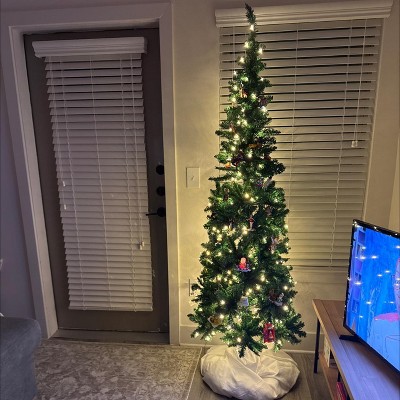 Love this narrow little tree! Perfect for my small space! Based on the mixed reviews I was unsure what to expect when the tree arrived but was pleasantly surprised! The tree was easy to assemble, and a nice green color. Took quite a bit of fluffing but looks quite full, lights are bright! Glad I took a chance and ordered this!