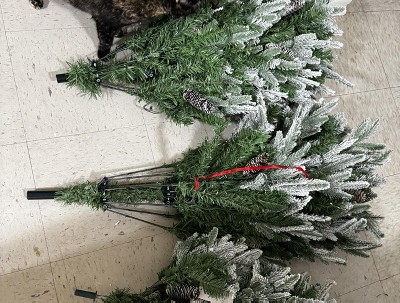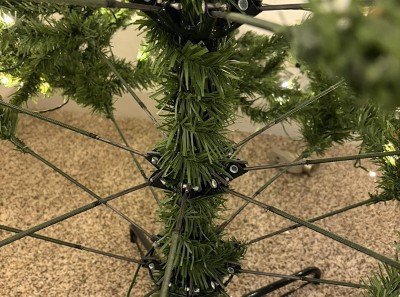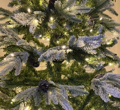 This tree requires fluffing! Like I fluffed for 4 hours- but had fun doing it, Christmas movie on and eggnog close by. The pine cones add to the vibe, and it turned out to be a really lovely tree that I’m quite happy to show off through my window. One draw back. The top of the tree is too weak to hold a topper of any kind. I tried the claw type attachment and the cone style. My husband said it’s like paper mache on the top, so likely a bow is going to finish this tree. Trust me, I had my concerns putting it together as the light connections looked flimsy and odd, but it all worked perfectly and I’m really happy with this purchase. I see it’s now less than when I purchased- so grab it! You’ll love it!
