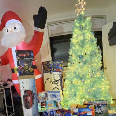 The 6/7 ft Xmas tree with dreamy blue branches has 758/1040 vivid tips that create a fairy tale fantasy. It is pre-lit with 280/380 warm white LED lights that offer a cozy glow, transforming any room into a holiday haven. Made from safe and enduring PVC, the decoration tree is fireproof, non-allergic, smell-free, and anti-fading. The hinged design allows for easy setup, with a folding metal stand for optimal stability for wide use. The Xmas tree is versatile and leaves a lasting impression at first glance, making it suitable for living rooms, office parties, and commercial spaces, serving as the perfect centerpiece for spreading warm wishes throughout the holiday season.