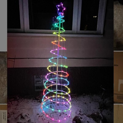 Our 6 ft lighted spiral Christmas tree is a classic and indispensable decoration for Christmas, which can perfectly blend into any indoor and outdoor area while adding warmth and romance to your living space. It is designed with 135 RGB LED lights that are evenly distributed in the coil, which can emit colorful lighting, bringing a beautiful festival glow to your house or yard. Moreover, there exist 10 lighting modes for you to choose from, bringing you diverse visual enjoyment. Also, the lighting effect can be changed by the mobile with a Smart Life APP, creating different scene atmospheres. Besides, it adopts a super-convenient spiral shape, which allows you easily and effortlessly set up the tree in minutes and requires no tools. Also, it can be folded into a compact size for convenient storage when not in use. Our LED Christmas tree can be a perfect addition to the living room, front door, porch, yard, garden, storefront, coffee shop, office, and more!