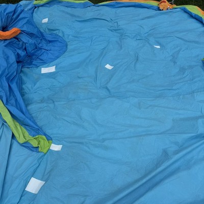 We bought this summer of 2024 and by the end of the season, the floor portion already had holes in it even with making sure no sharp objects, shoes, etc. were inside of the water slide. It’s like the bottom needs to be reinforced better because our previous water slide with a stronger bottom we’ve had for 3 years is not peeling, cracking, and making holes in the bottom pool portion. It’s impossible to get totally dry unless you flip it over, blow it up, and use a leaf blower and the sun to dry. I wish I wouldn’t have spent $400 on a water slide to last one summer in somewhat good condition.