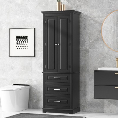 Keep your items neatly organized with our tall bathroom storage cabinet!