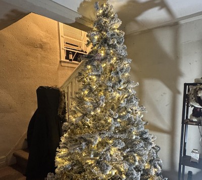 The tree was an absolute disaster! The flocking literally piled on my floor when I started putting together the tree. I had to clean up the mess. My son and I started sneezing like crazy. The tree had to go!