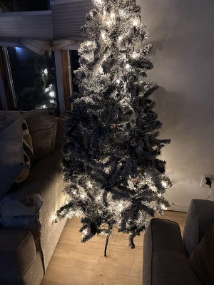 This tree looks nothing like the photo. The middle and lower sections of the tree are very sparse between the branches. The flocking is terrible, and the lights are not bright at all. I really tried to love this tree, but I'm truly disappointed with this purchase. Customer service was no help. At least post true photos so buyers can be aware of what they're getting.
